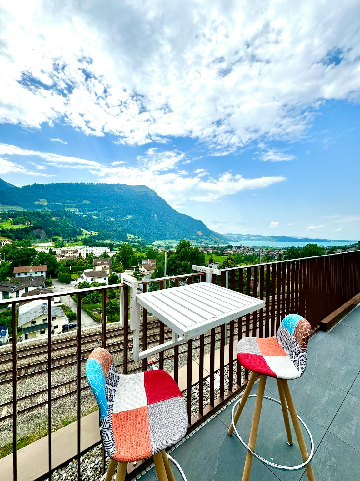 Panorama Balcony: Large private terrace with iconic views of Mt. Rigi, Rossberg, kleine & grosse Mythen, and Lake Zug.