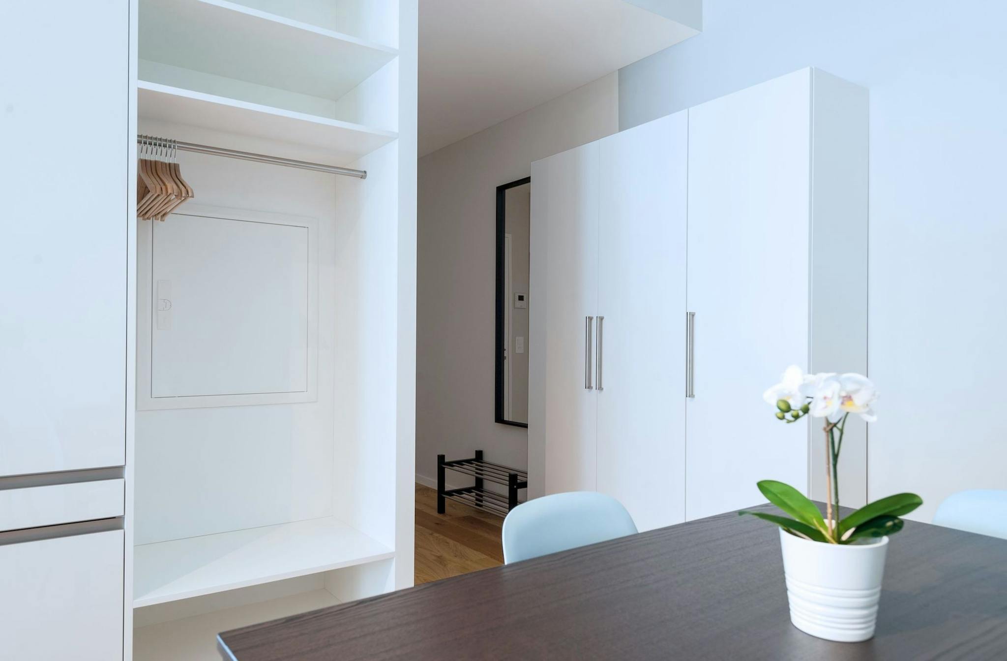 The modern studio, named after the Swiss painter Ferdinand Hodler, offers unique comfort and makes your holiday a memorable experience. The pretty studio has a spacious living/bedroom which is equipped with two small double beds and a sofa with pull-out function. There is also a sitting area with a dining table and chairs. The open kitchen has everything you need to prepare a delicious meal. You will find a dishwasher, oven, fridge with freezer compartment, a Nespresso machine and many other small extras. Of course the studio has a private bathroom with shower and toilet. The studio also has a terrace where you can relax and unwind. The studio is facing the inner courtyard and despite its location in the middle of the city you can enjoy wonderful peace and quiet.