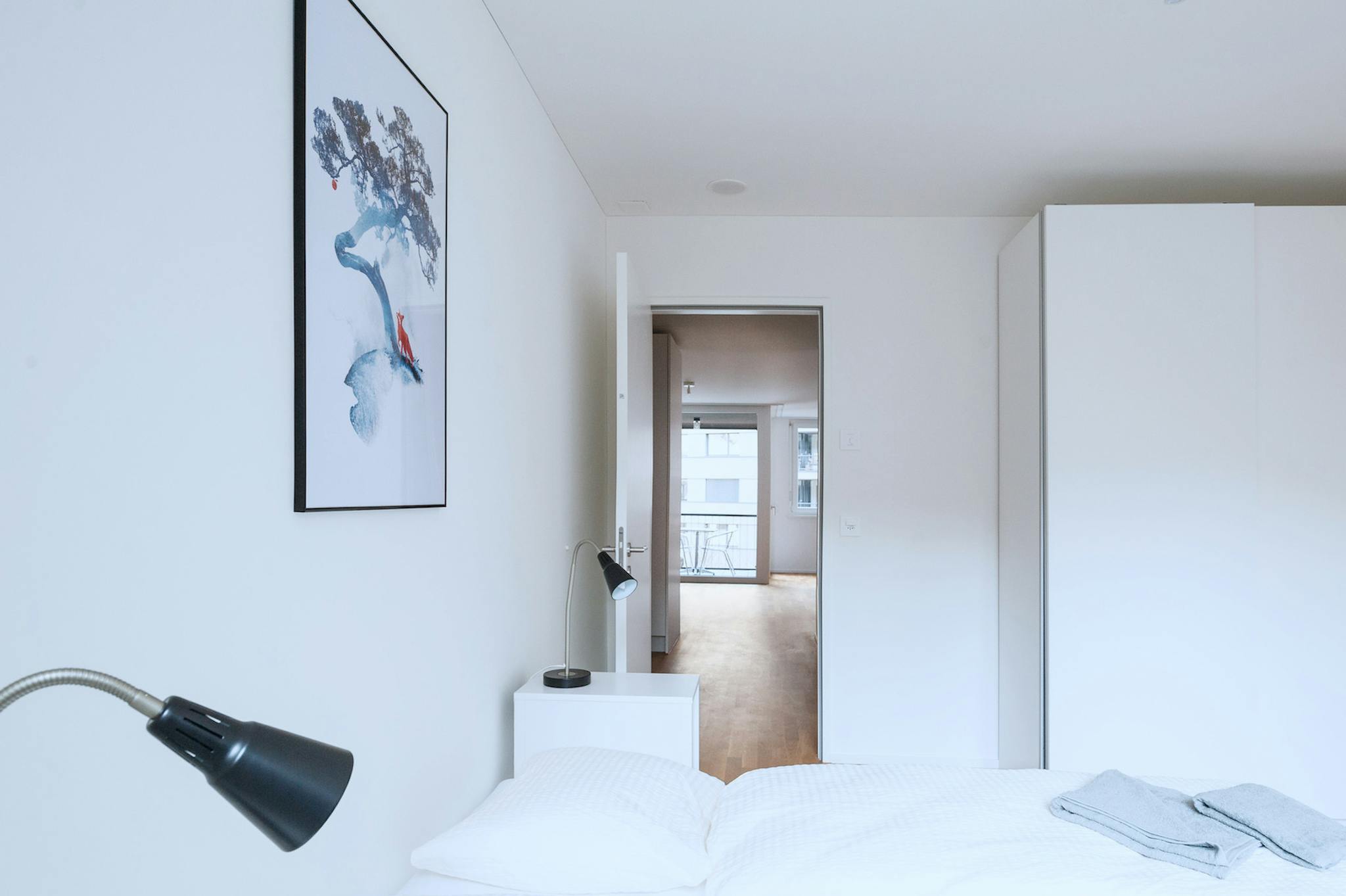 The furnished apartment is located in the Bâleo Erlenmatt building. It combines a wide range of uses, offers and lifestyles. For example, there is a Coop supermarket, a coffee & tea shop, a nursery and a fitness studio.