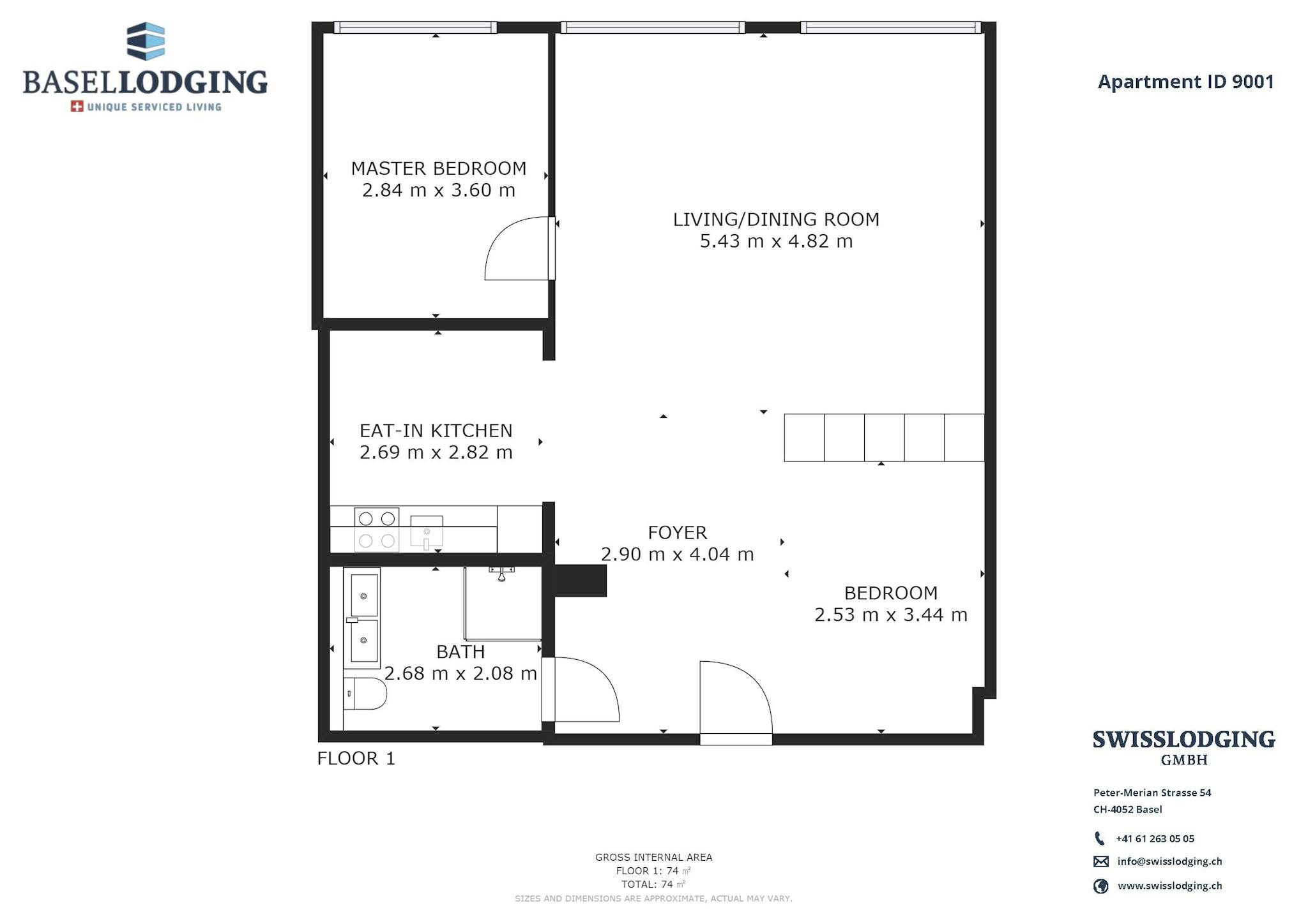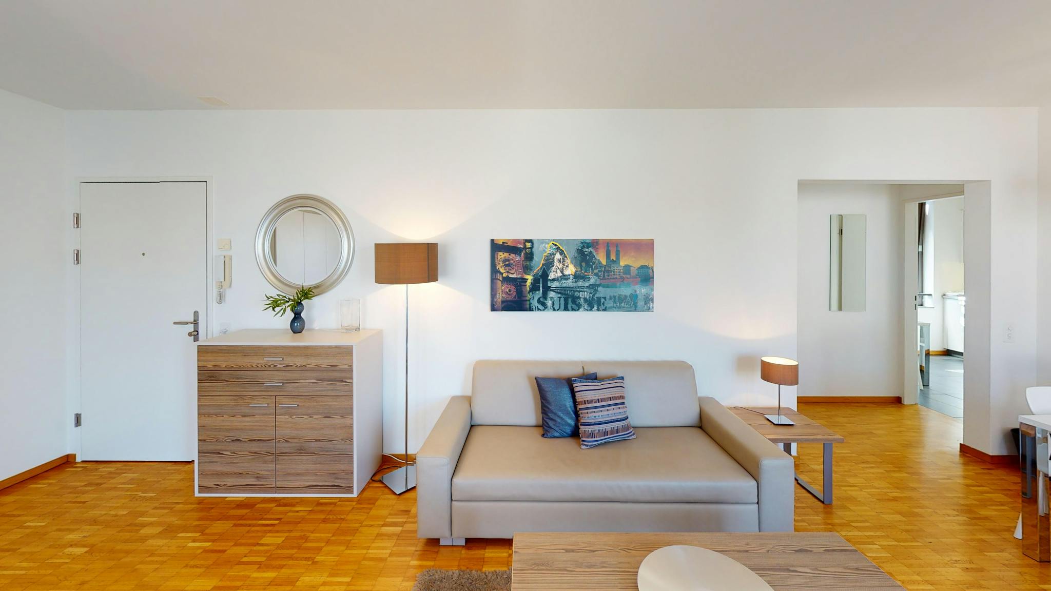 Non-SmokingNot allowedThis spacious and modern 2.5 room is located on the ground floor. The apartment offers a combined living/dining area with open kitchen, a bedroom with double bed and a separate bathroom with shower and toilet. A second sleeping area for guests or children is integrated in the living room and can be separated by a partition wall. Living space 74m2. Direct access to the beautiful Rhine promenade. Housekeeping and linen change on request.