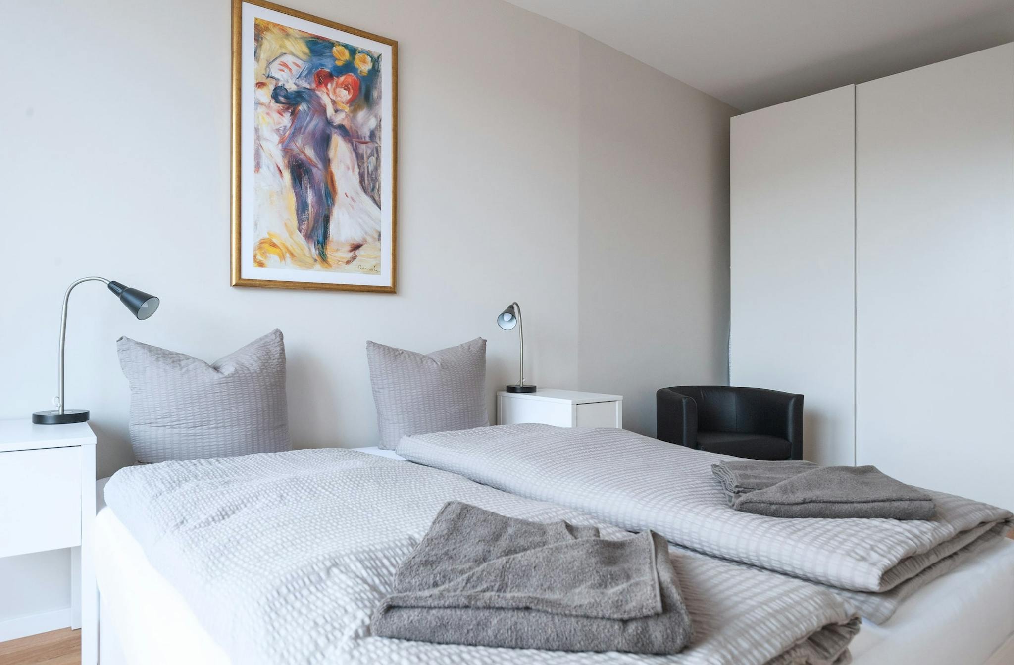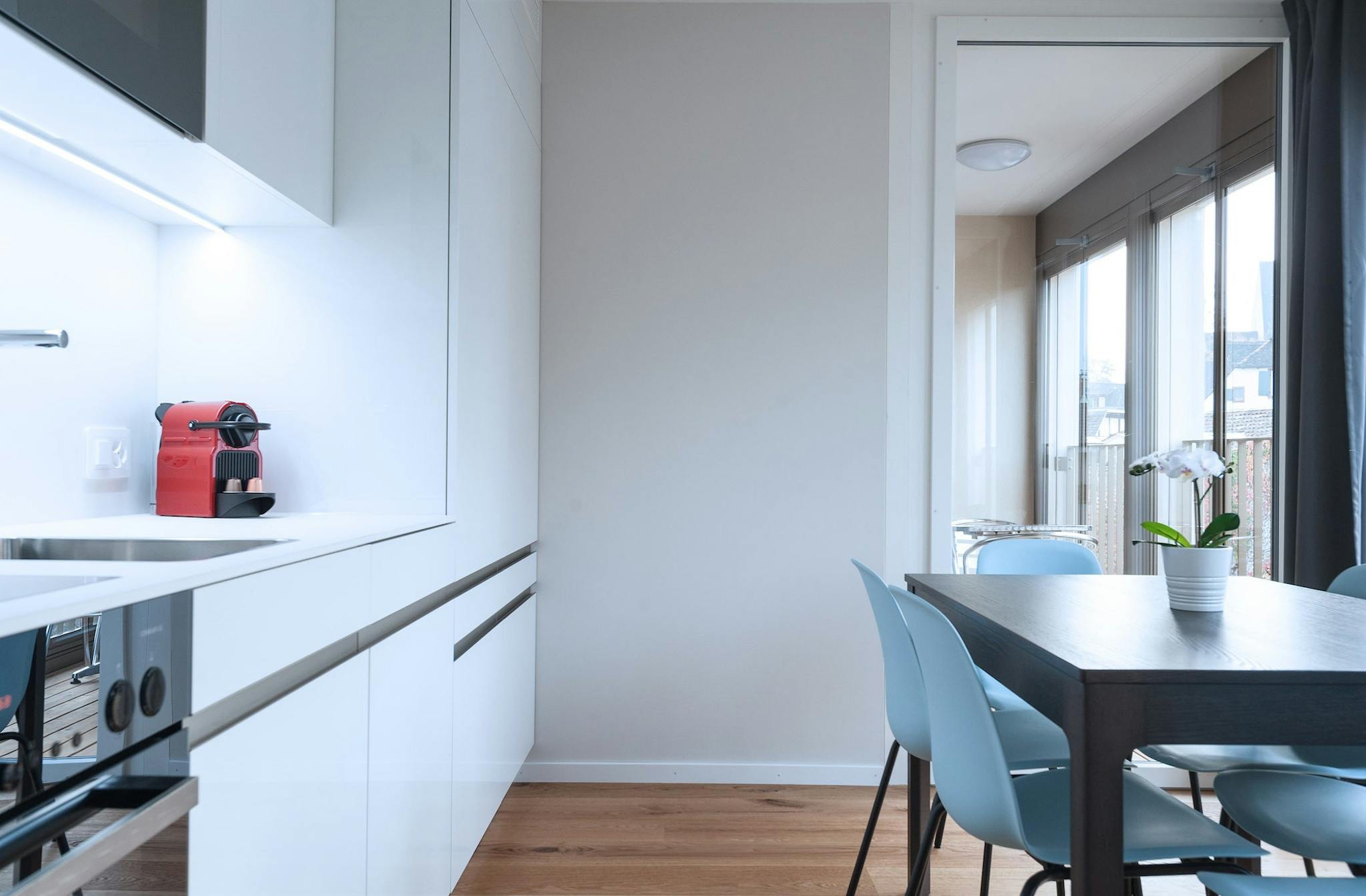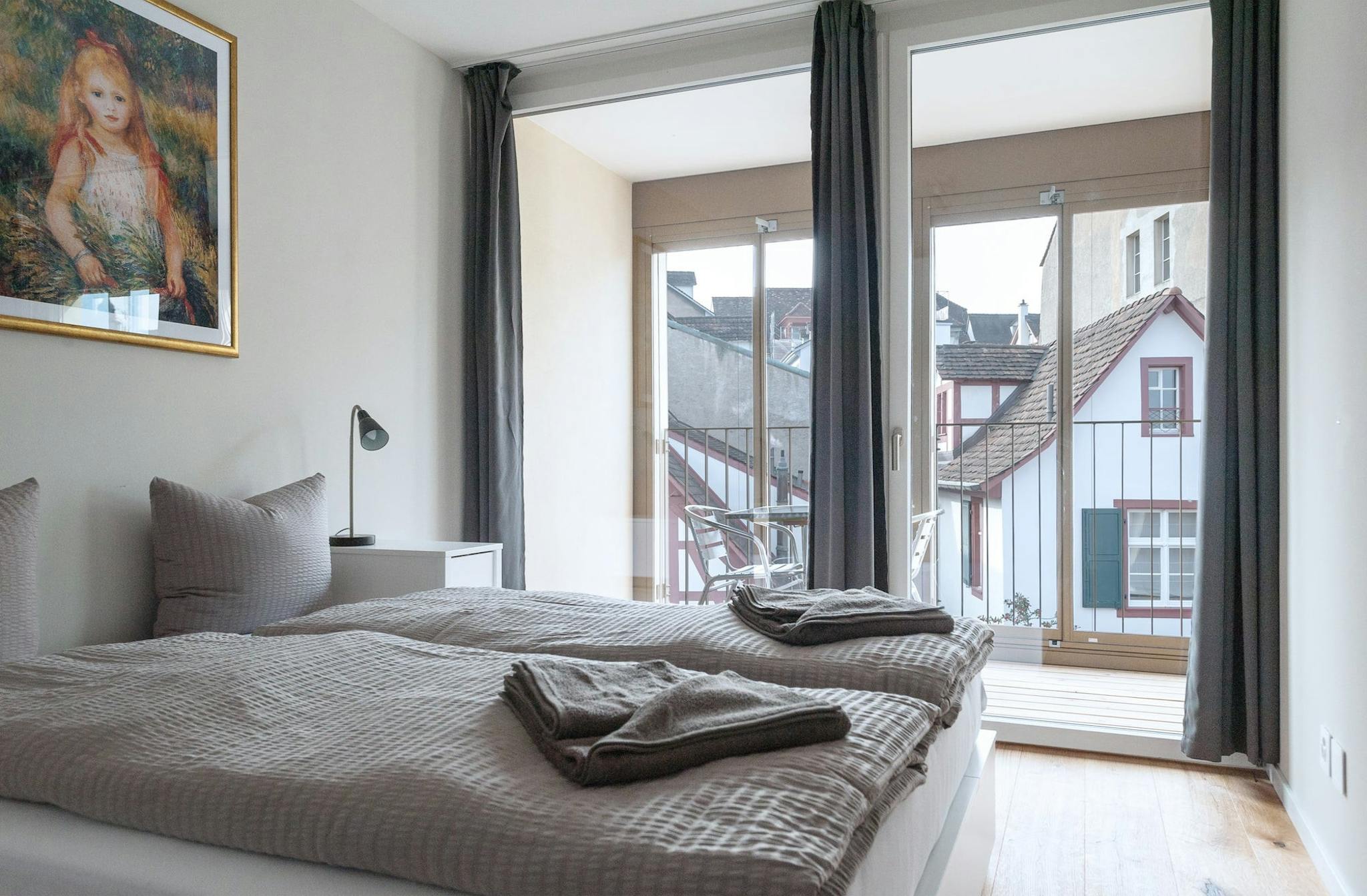 A big advantage of the apartment are the two loggias and a balcony. Each room has access to a loggia or balcony and thus has an area with fresh air. Here you can additionally relax, enjoy the sun a wonderful view over the old town of Basel. During your stay, you will also enjoy free Wi-Fi Internet, a television with international channels and free washing. Also included are all additional costs, bed linen, towels, bath towels and final cleaning (stays shorter than 30 days).