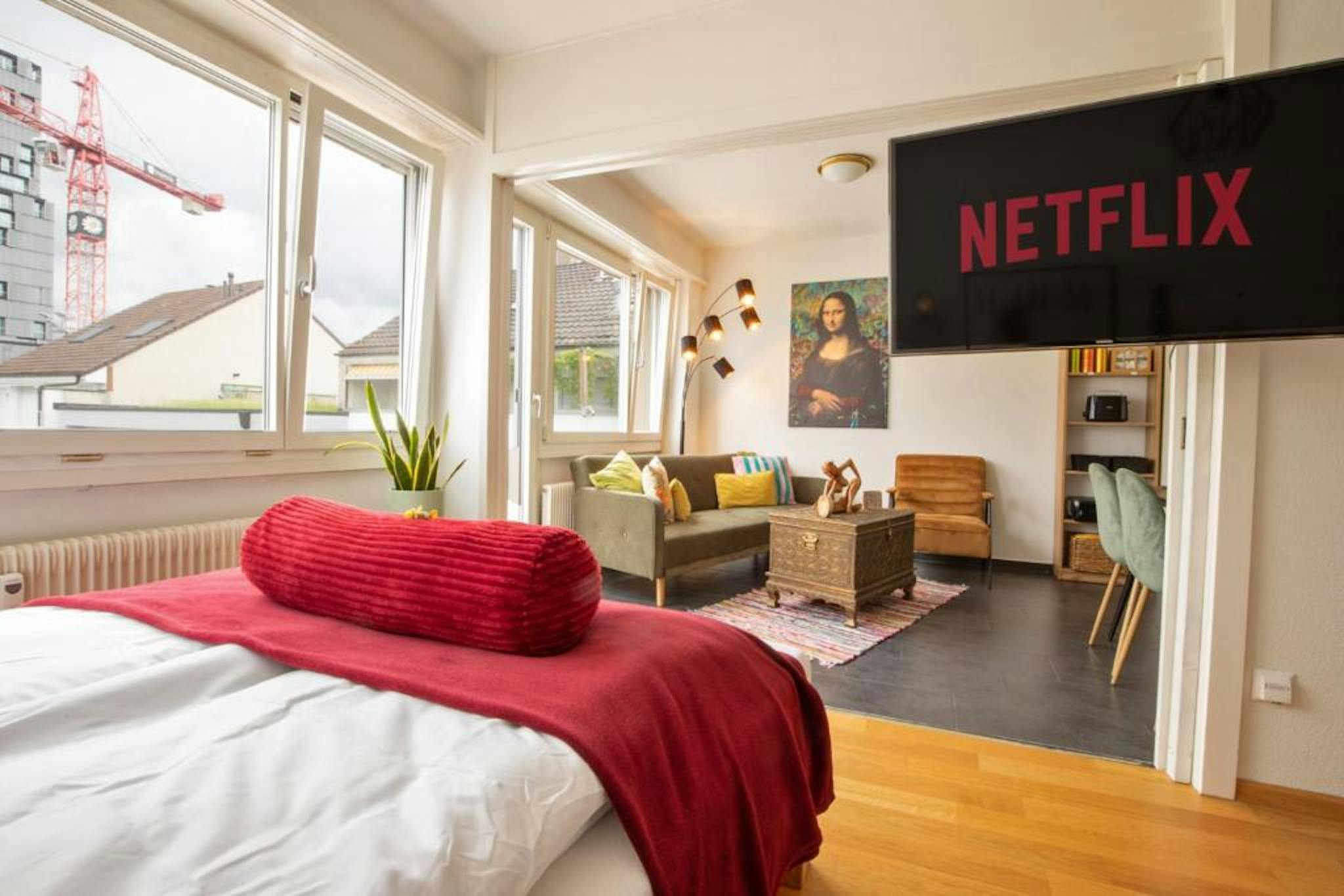 There is also a wireless printer, unlimited WLAN, a large TV with various international channels and NETFLIX.