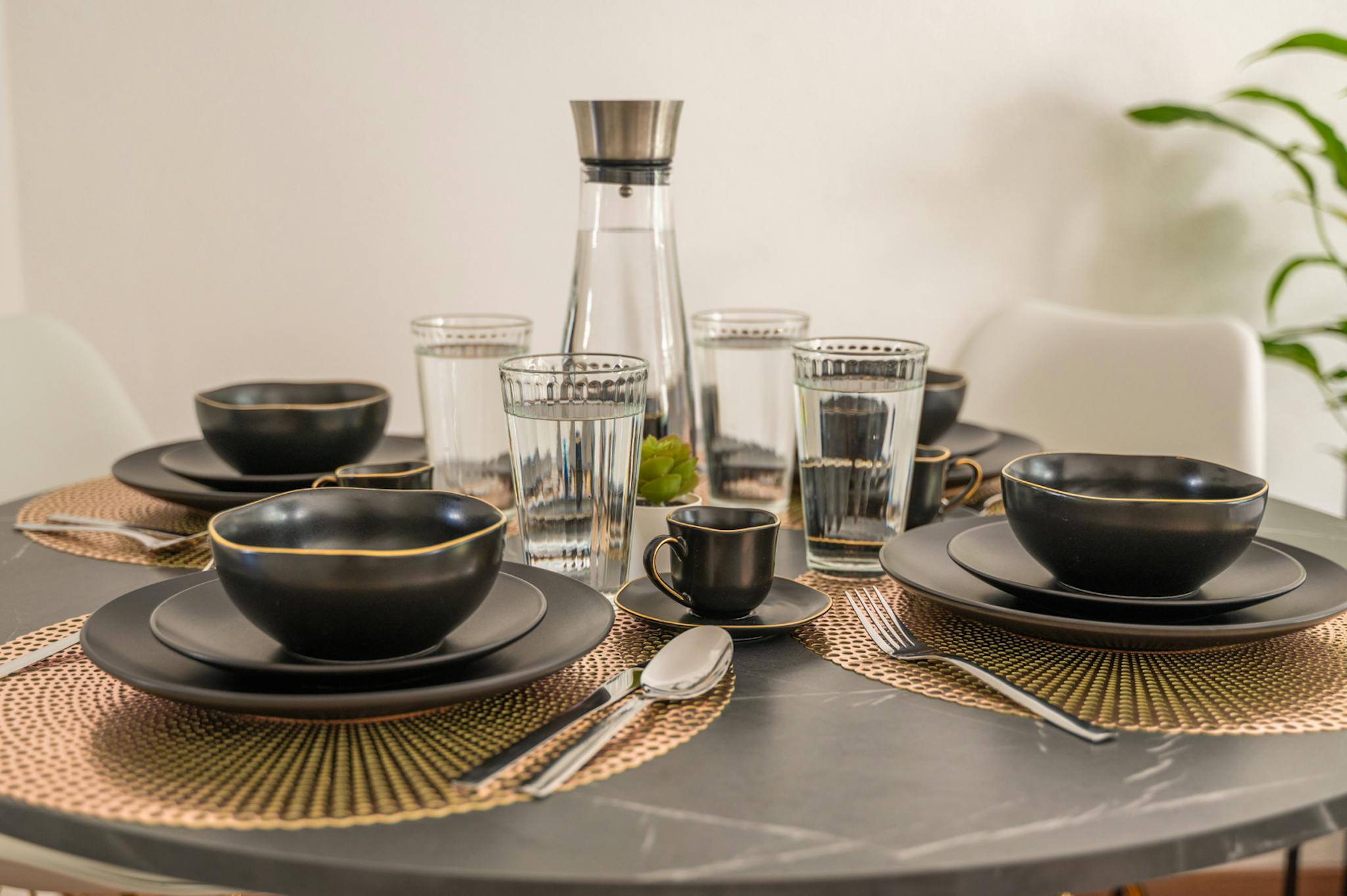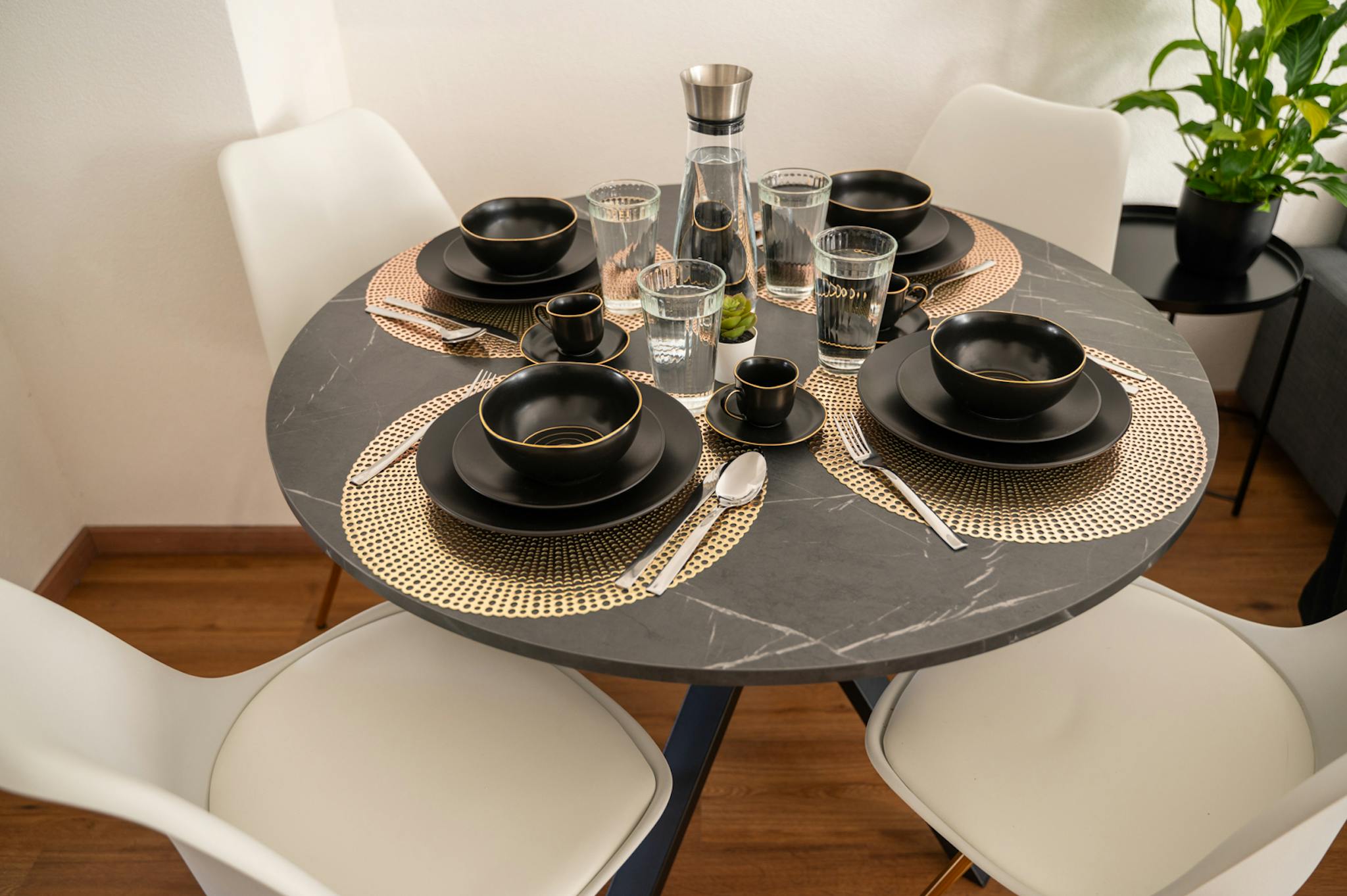 The modern, fully equipped kitchen with an electric stove, hot oven, efficient dishwasher, fragrant coffee machine, etc., has everything you need to cater to yourself. Coffee pads and tea are, of course, included in our kitchen amenities.
