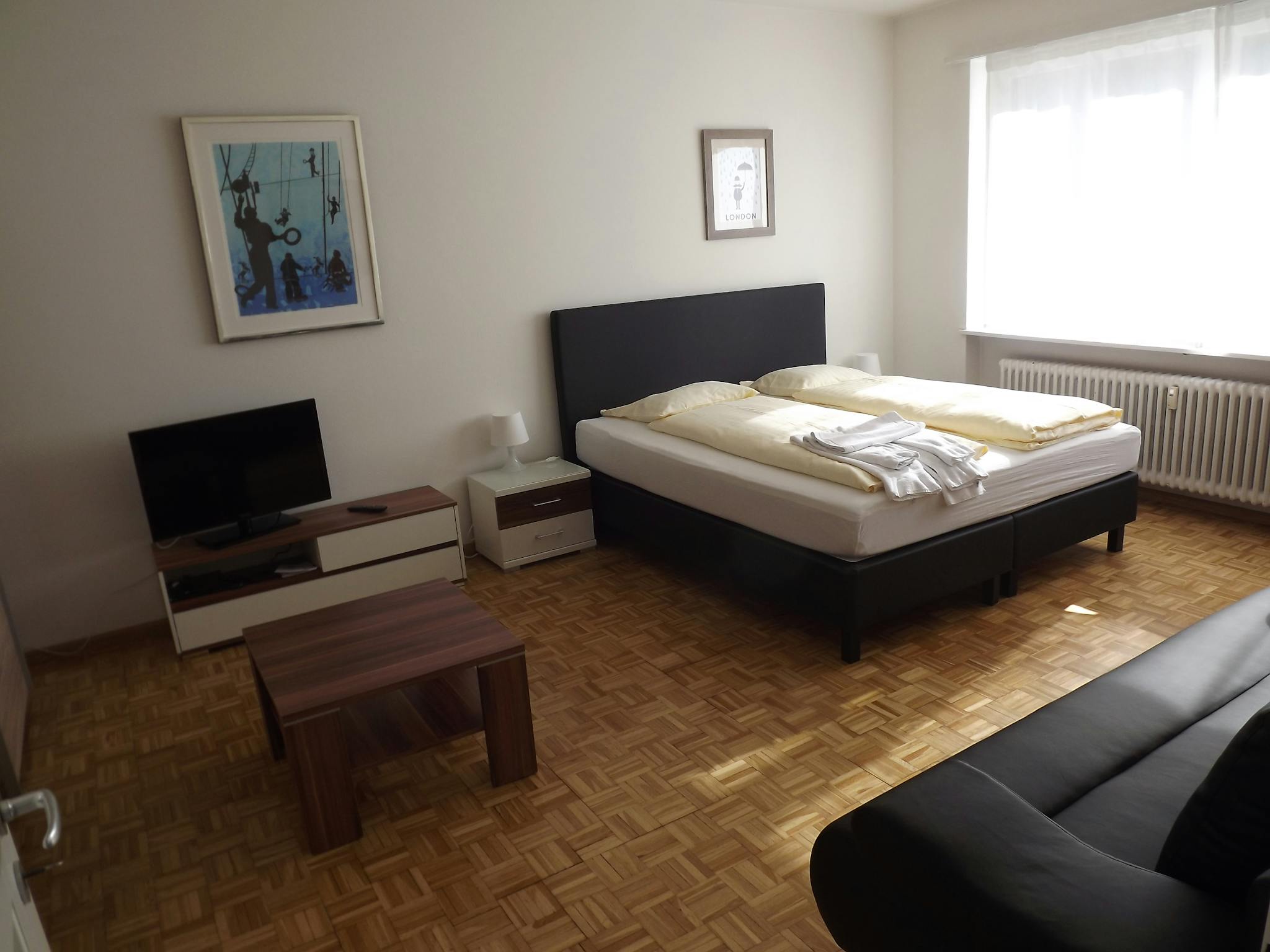 Comfortable living space with cable TV, ideal for relaxing after a day exploring Basel. ๐บ