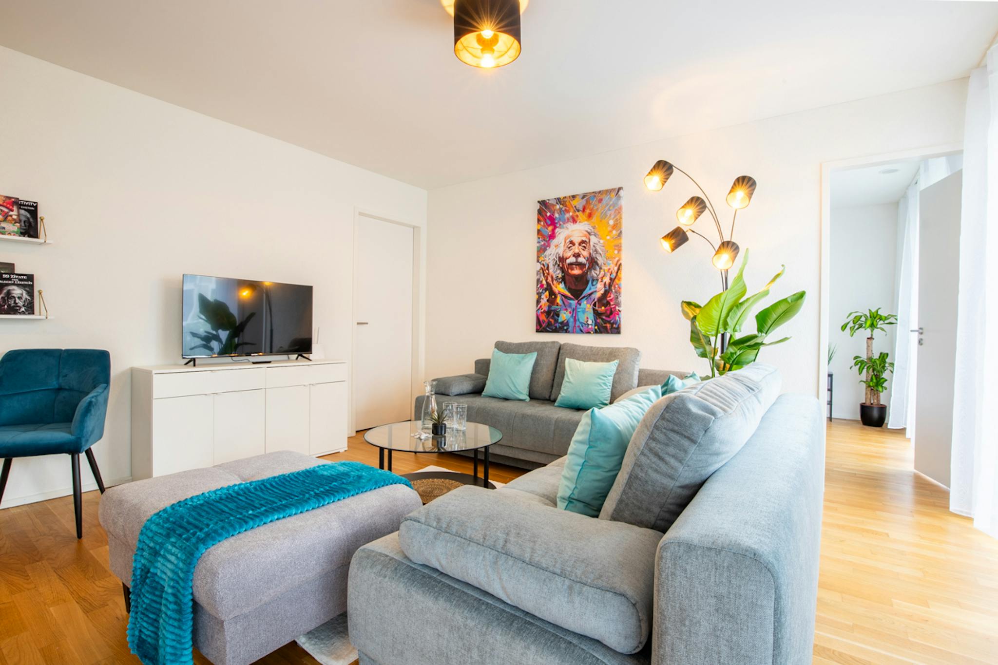The 65m2 large 2.5 room apartment is stylishly furnished and offers a unique atmosphere. Additionally, you will find a range of extras here that far exceed the standards of average (hidden) apartments.