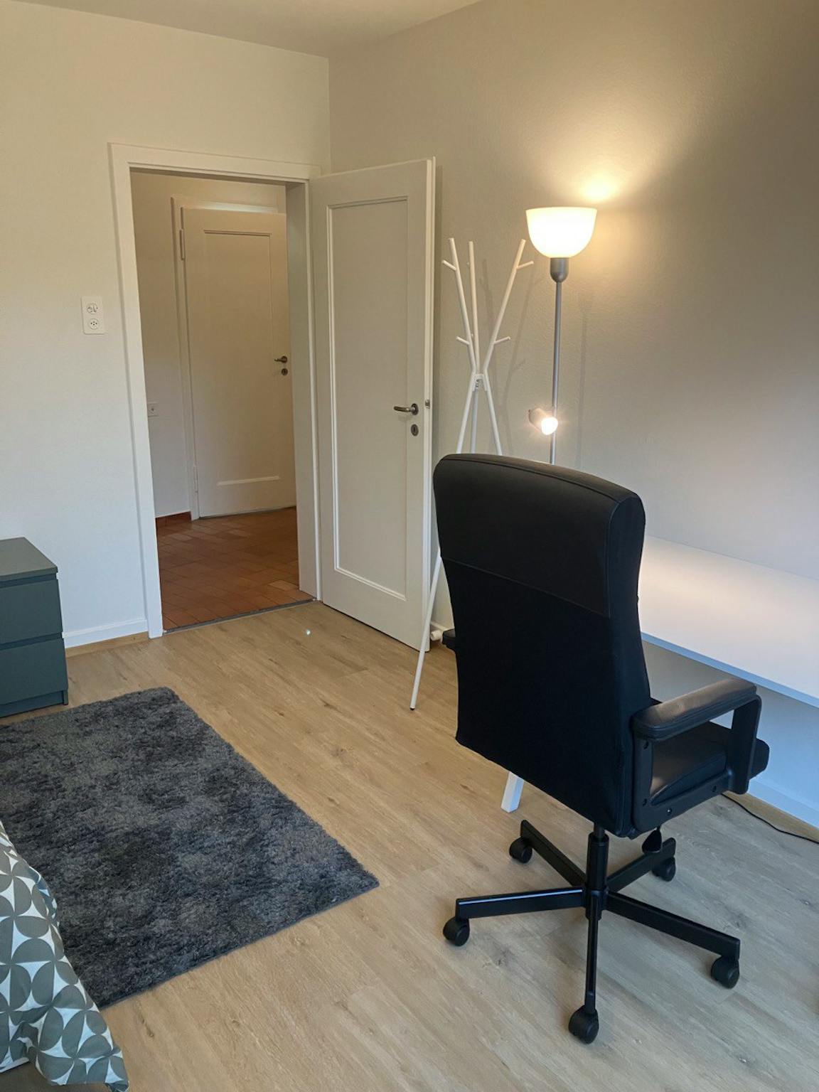 Das Zimmer ist voll möbliert und befindet sich in einer grosszügigen 4-Zimmerwohnung von 100 m2 mit Küche, Badezimmer mit separatem WC, Gang sowie dem grossen Balkon zur Mitbenutzung.