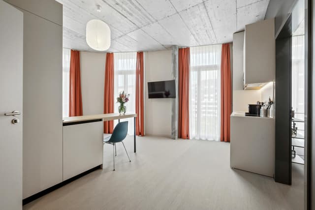 Do you like to move around in a crowd, but also enjoy some peace and tranquillity? Welcome home! Here you'll find plenty of space for you and your belongings, a comfortable king-size bed and high-quality furniture. Your own bathroom is ready for your daily beauty routine, while a Smart TV and a fully equipped kitchenette ensure your comfort. The pictures are examples - your individual Classic Apartment may differ from the photos.