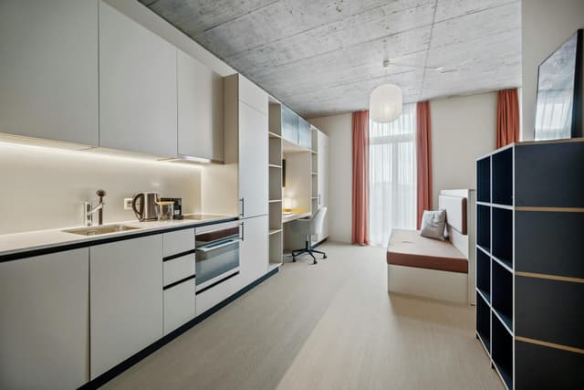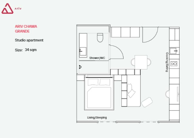 Does your other half visit from time to time at the weekend? Or do you simply want more space and a bigger bed for yourself? Whatever it is, our Grande 1-bedroom apartment is just right for you. Each Grande offers you high-quality furniture, a comfortable king-size bed, a private bathroom, a Smart TV and a fully equipped kitchenette. The pictures are examples - your individual Ariv Grande may differ from the photos.