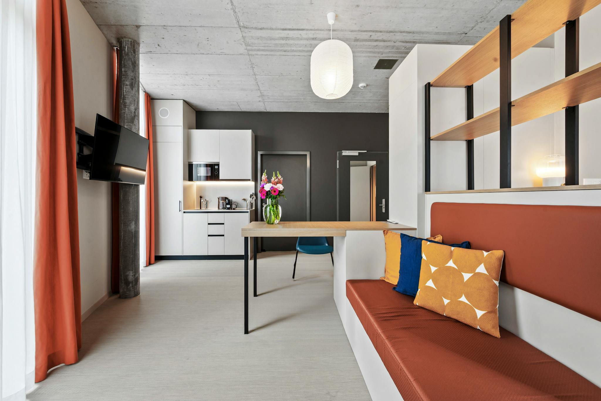 Do you like to move around in a crowd, but also enjoy some peace and tranquillity? Welcome home! Here you'll find plenty of space for you and your belongings, a comfortable king-size bed and high-quality furniture. Your own bathroom is ready for your daily beauty routine, while a Smart TV and a fully equipped kitchenette ensure your comfort. The pictures are examples - your individual Classic Apartment may differ from the photos.