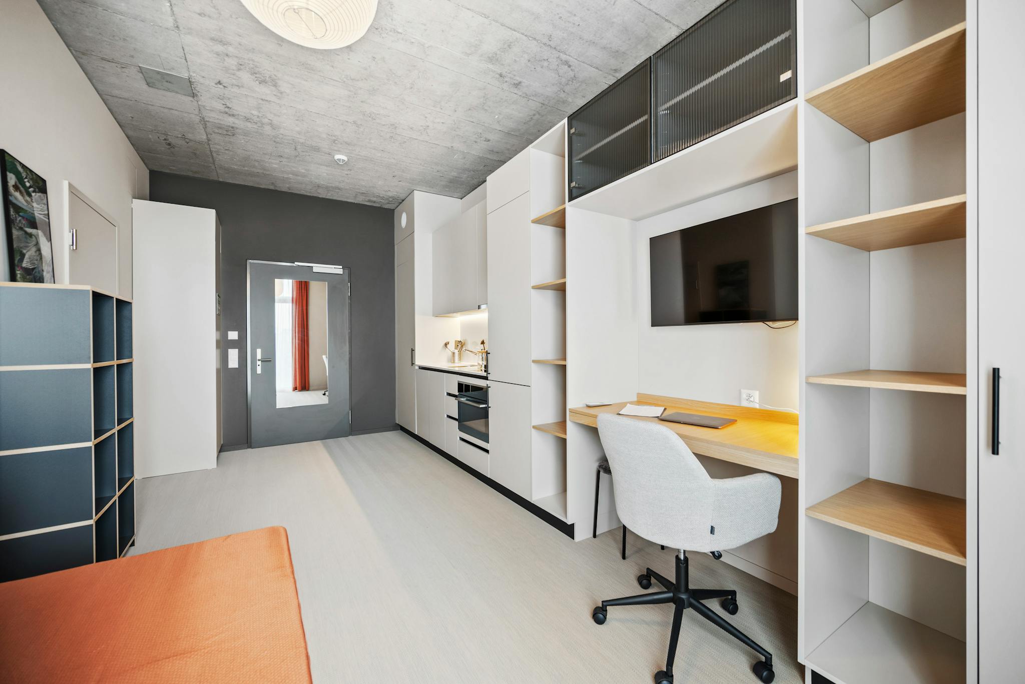 Does your other half visit from time to time at the weekend? Or do you simply want more space and a bigger bed for yourself? Whatever it is, our Grande 1-bedroom apartment is just right for you. Each Grande offers you high-quality furniture, a comfortable king-size bed, a private bathroom, a Smart TV and a fully equipped kitchenette. The pictures are examples - your individual Ariv Grande may differ from the photos.