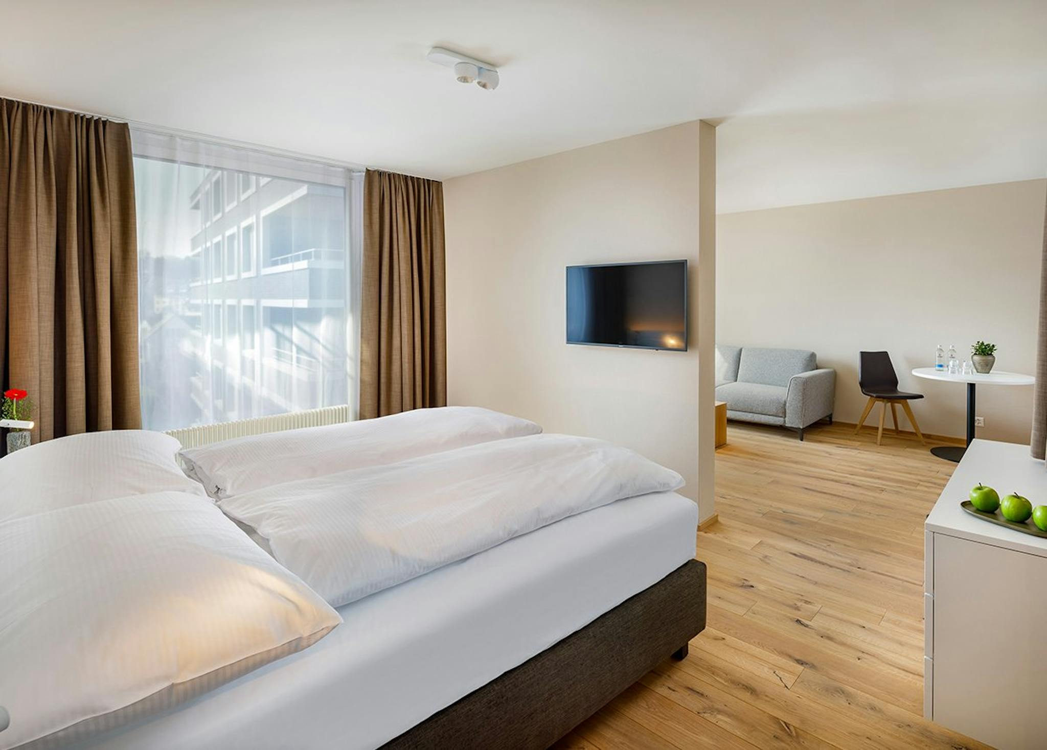 In addition and in accordance with your needs, there are our Allegra Lodge services which include a sumptuous breakfast buffet, Restaurant & Bar Tschadun, a lounge, various meeting rooms, a private spa, and a fitness facility. We do everything so that you’ll feel completely at home with us!