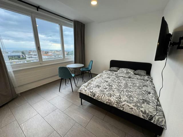 Non-SmokingNot allowedStudios de 1,5 pièce entièrement meublés, rénovés en 2025, Vue sur le lac, en plein centre de Lausanne. Lumineux et calmes, parfaits pour étudiants ou jeunes actifs. WIFI, Cuisine équipée, salle de bain moderne, lit-armoire, TV, table, chaises, vaisselle et linge fournis. Immeuble avec ascenseur. Prêts à vivre,