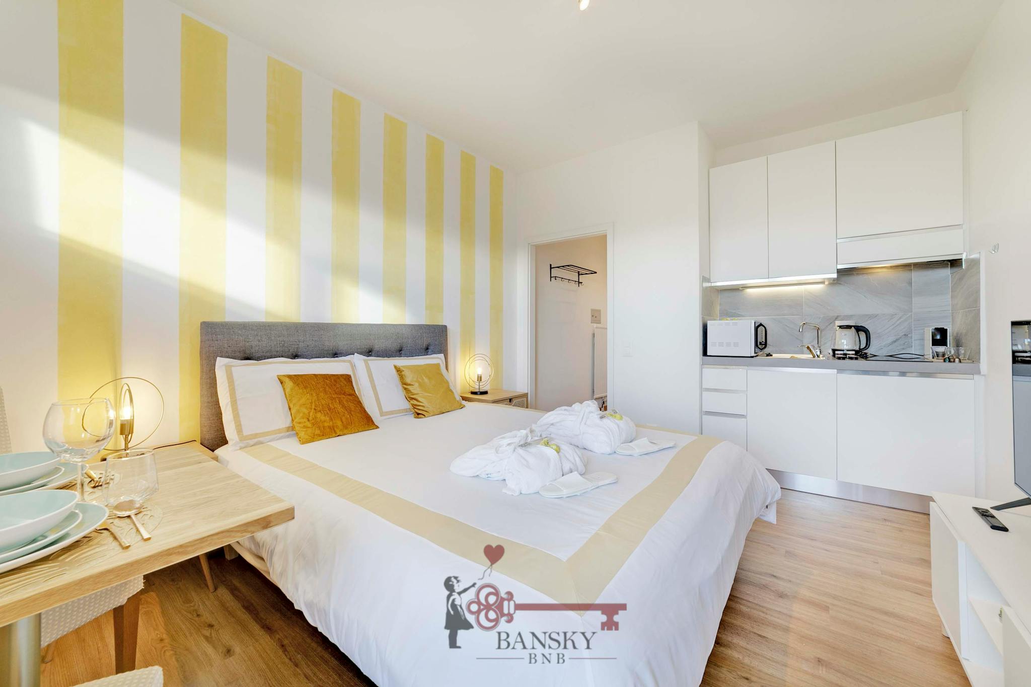 Nordic Suite is a studio apartment in a central building, located on the seventh floor with a lift, with a spatial view of the city.
