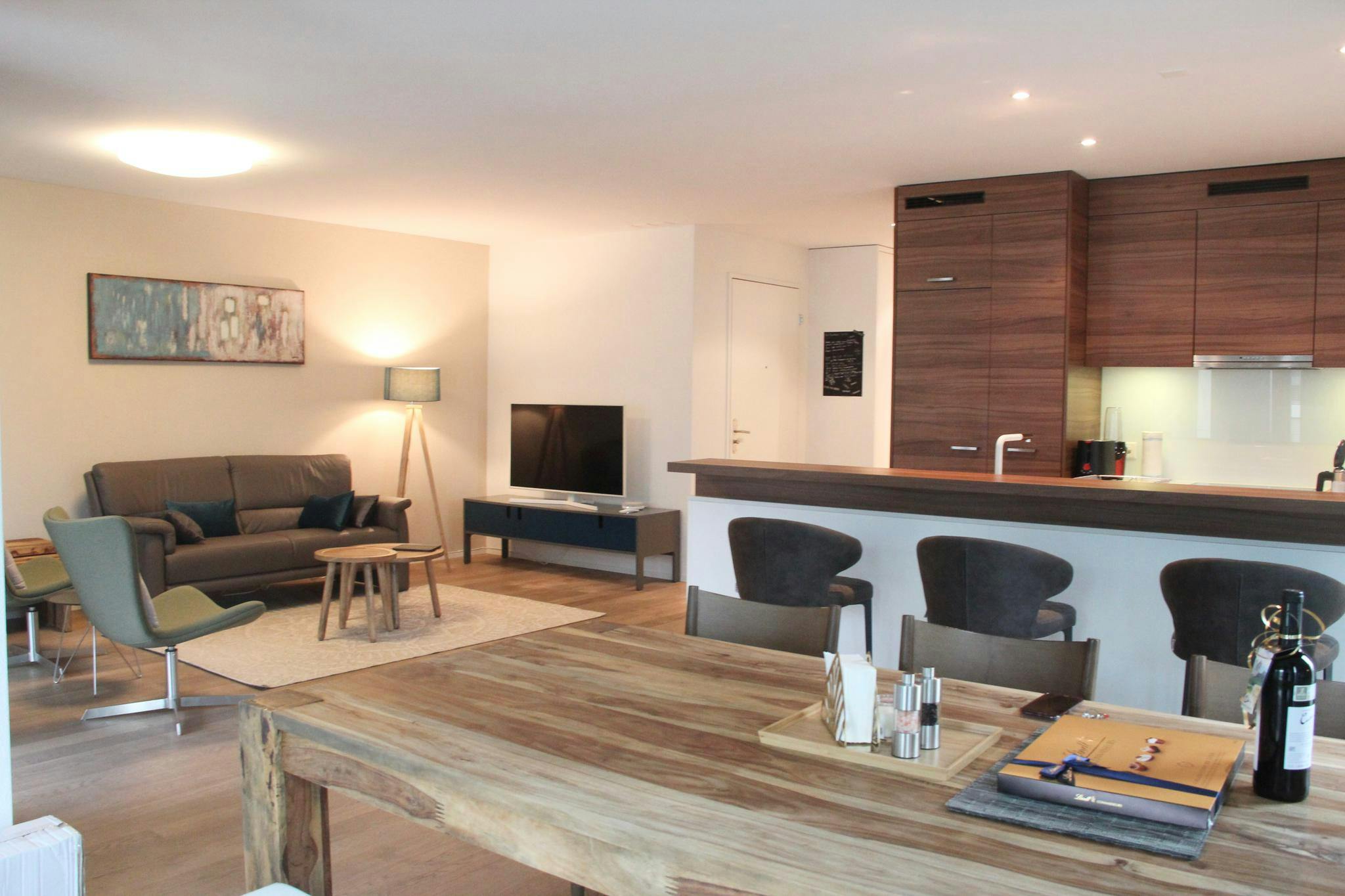 Non-SmokingNot allowedLocated in one of the prime locations of Zurich this is a spectacular, brand new apartment with a minergie rating. The whole apartment is furnished with energy efficient interiors reducing the environmental impact and is very bright with ample natural light. Modern interior with dark glossy wood furniture, open kitchen and aquatic themed curtains and styling, this apartment brings harmonious synergy of tranquil and calm.