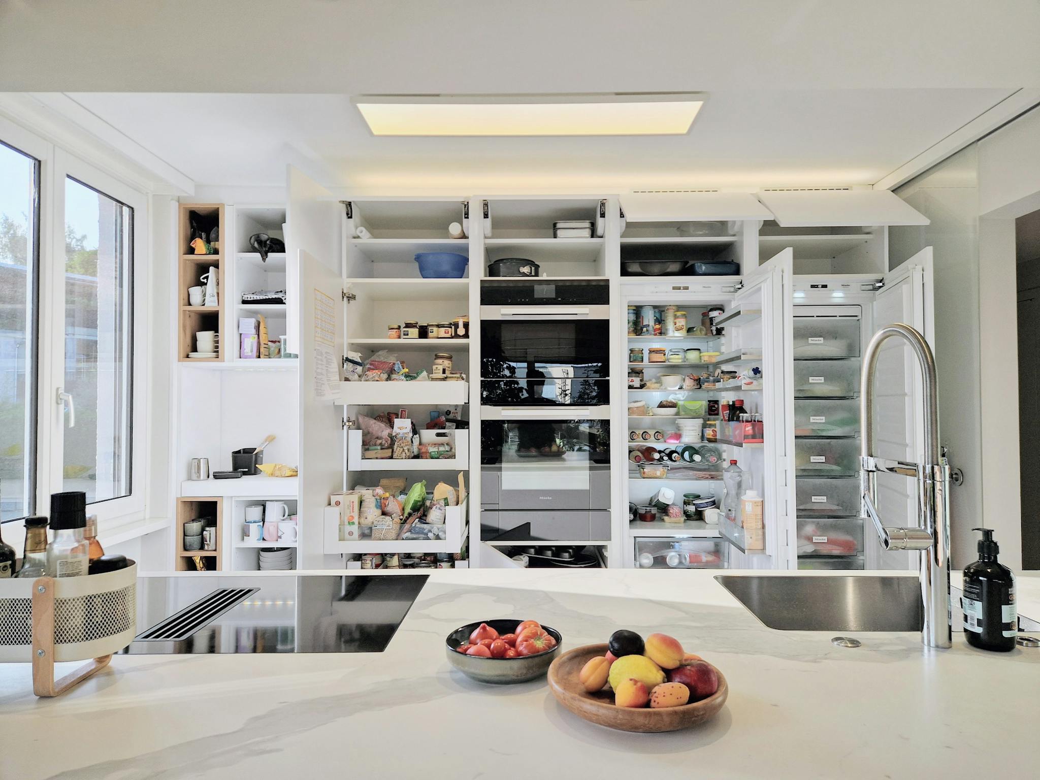 The open living and dining area with elegant wooden floors offers plenty of space to relax or work from home. The modern kitchen is fully equipped with top-standard appliances: induction stove, steamer, oven, and dishwasher. The bathroom features a spacious rain shower, and both a washing machine and dryer are located in the apartment.