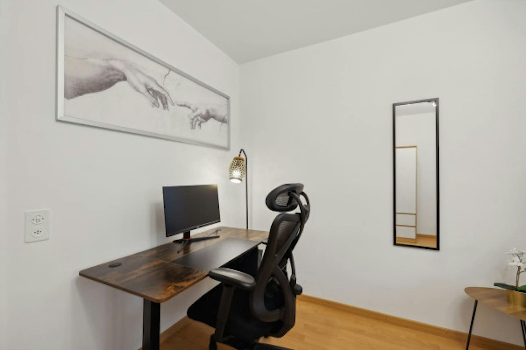 Welcome to Pearlstay – a fully equipped private room in a renovated apartment with excellent connectivity in Winterthur! 55" 4K Smart TV + Netflix/Prime 24" monitor + 10 Gbit/s fiber internet Work desk + private fridge Free washer & dryer Shared kitchen, bath, dining & balcony Supermarket & bus just 2 min away 20 min to Zurich or Schaffhausen