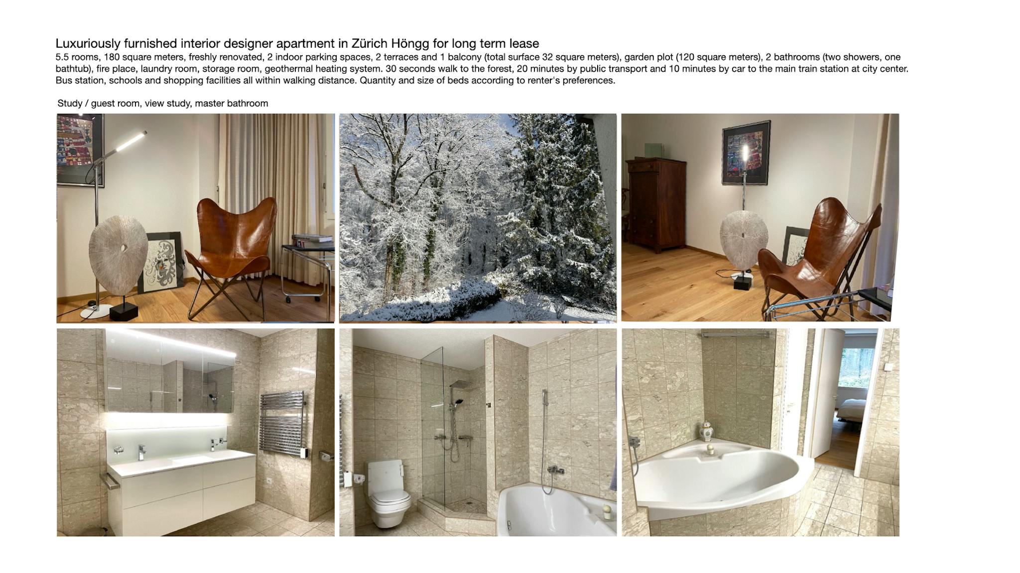 Non-SmokingNot allowedLuxuriously furnished interior designer apartment in Zürich Höngg for long term lease