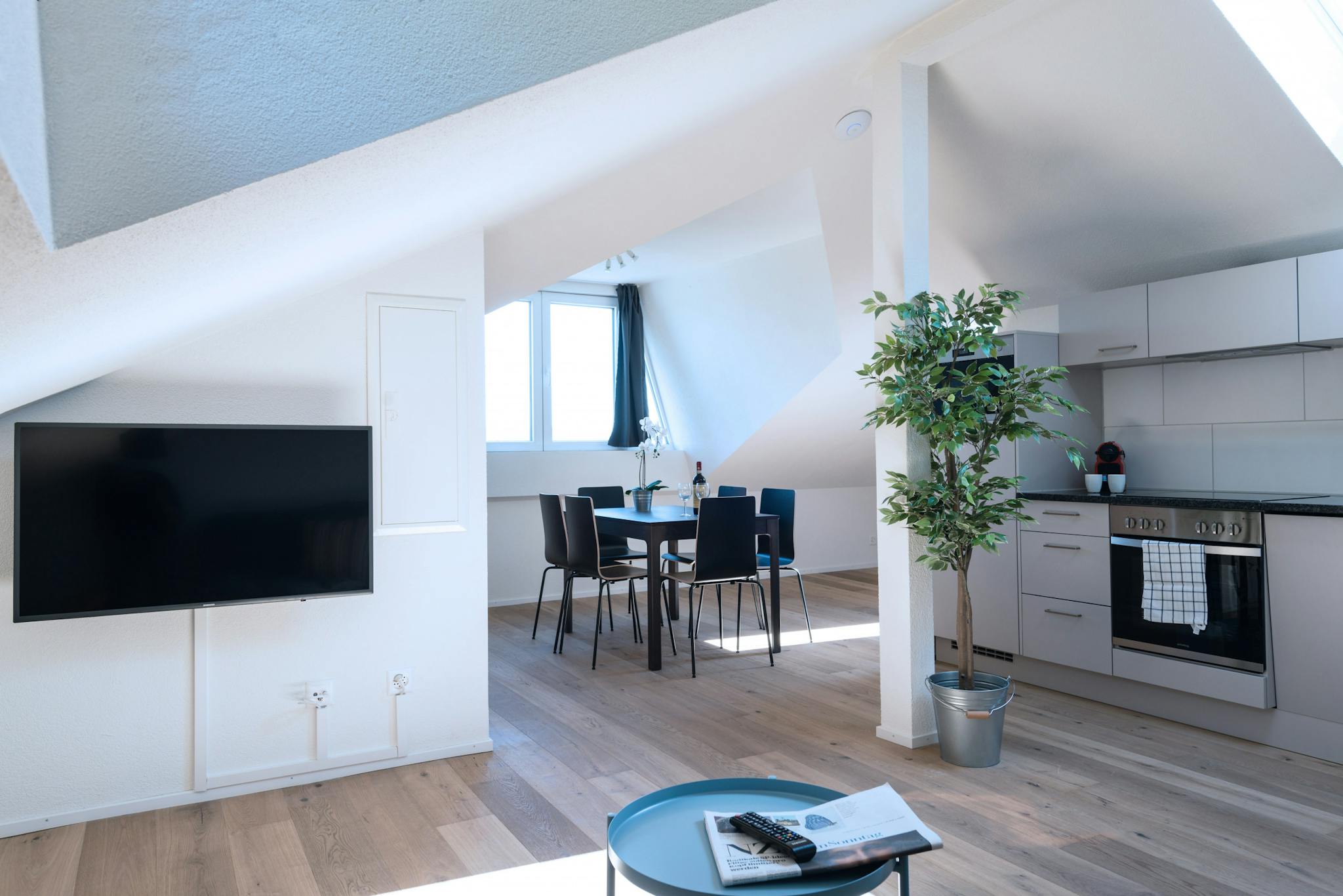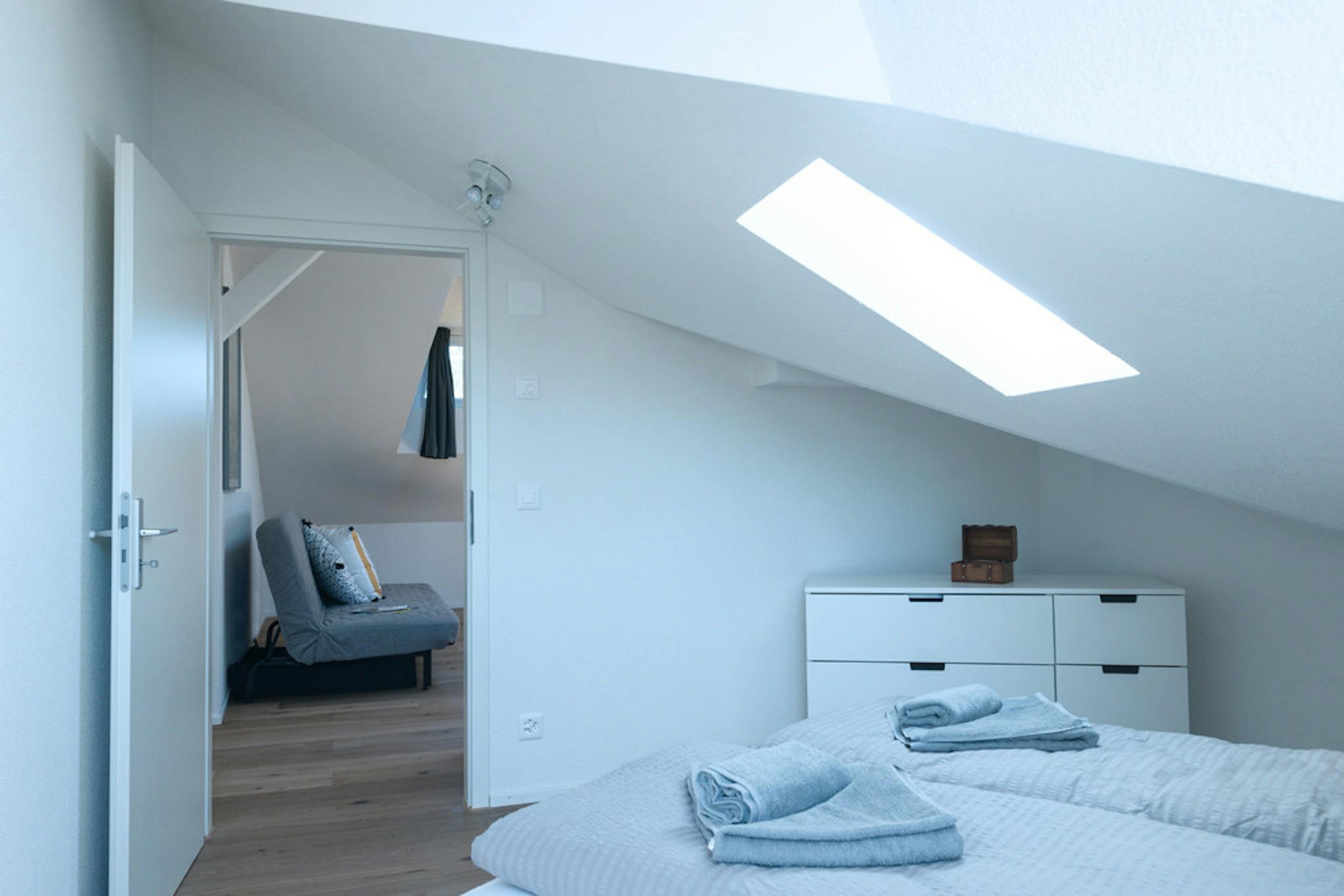Are you planning to go on holiday to Zurich and have not yet found suitable accommodation? Then this holiday or business apartment is the right solution for you. This is an elegant and furnished attic apartment in Zurich Wiedikon boasts 3 spacious rooms. Altogether this modern holiday apartment offers sleeping places for five persons.. There are two large double beds and in the living room there is an additional sofa bed. Moreover, the holiday accommodation offers a modern kitchen equipped with the most modern kitchen appliances. Of course you also have a private bathroom in the apartment.