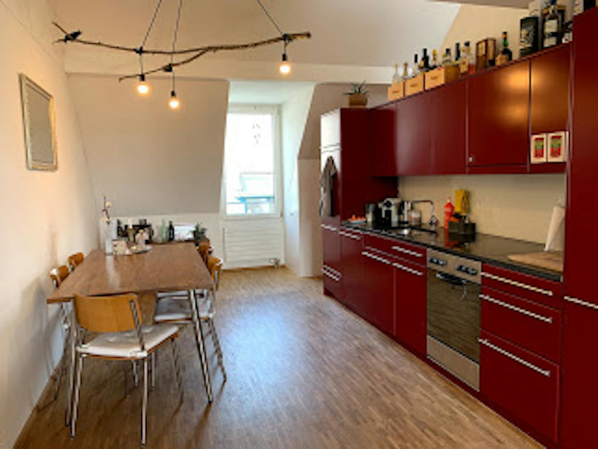 2,5 Zimmer Wohnung Nähe Kalkbreite / Bezirksgebäude im Kreis 4 mit eigener Dachterrasse, Kamin, Badewanne für Januar (max. 29.12-07.02.) zu vermieten.