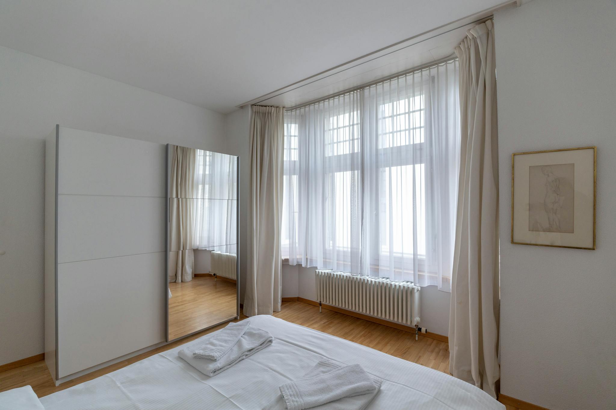 The apartment is fully equipped including flat screen TV and WiFi. The bed sofa in the living room provides additional space for guests. Household appliances such as microwave, coffee machine, kettle, toaster, iron, vacuum cleaner and hairdryer are available. The kitchen is equipped with the usual utensils such as pots, pans, dishes and cutlery.