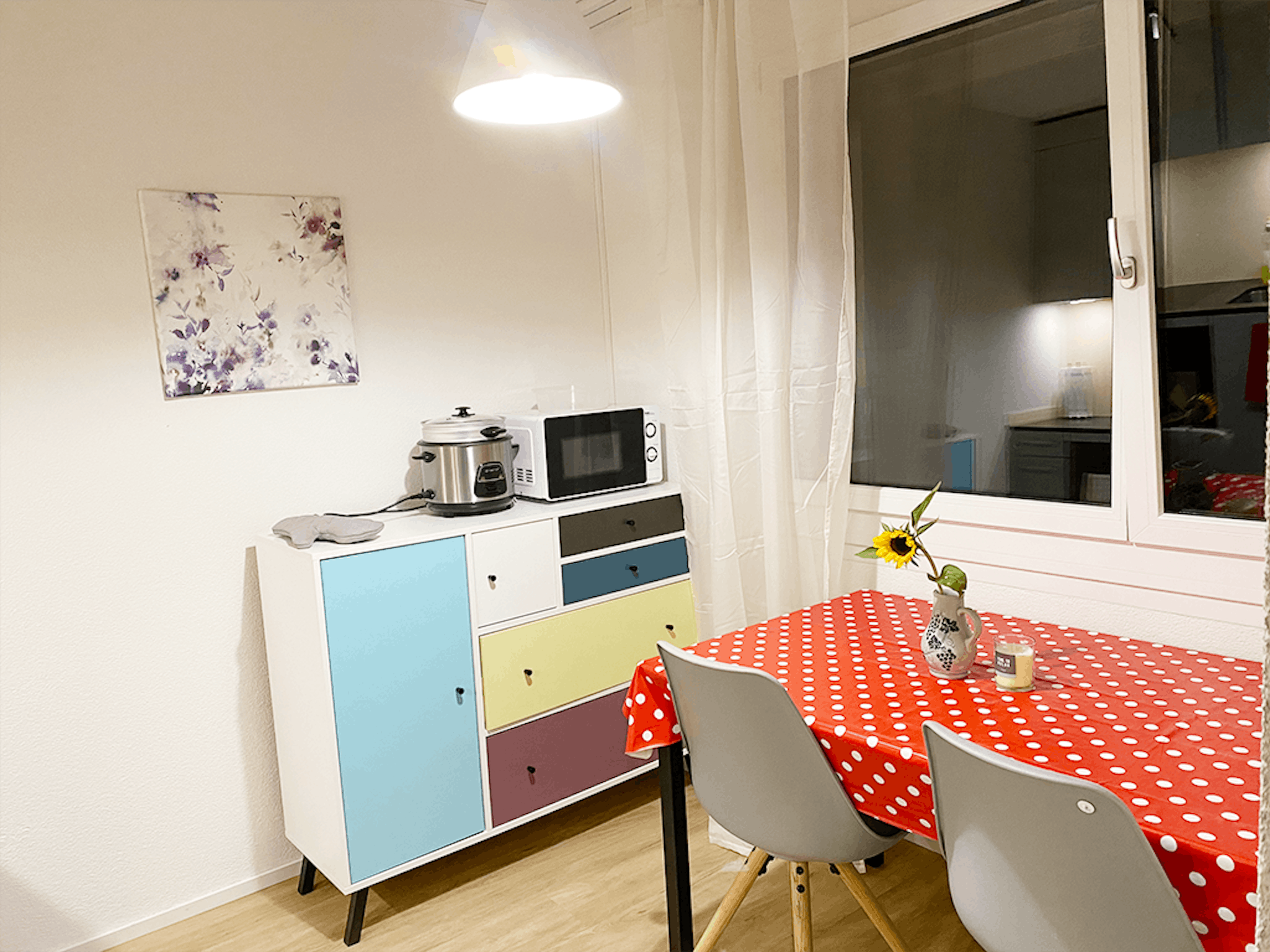 Spacious living area with plenty of natural light Modern kitchen with built-in appliances Comfortable bedroom with ample wardrobe space Bathroom with clean finishes and ventilation Heating system in good condition