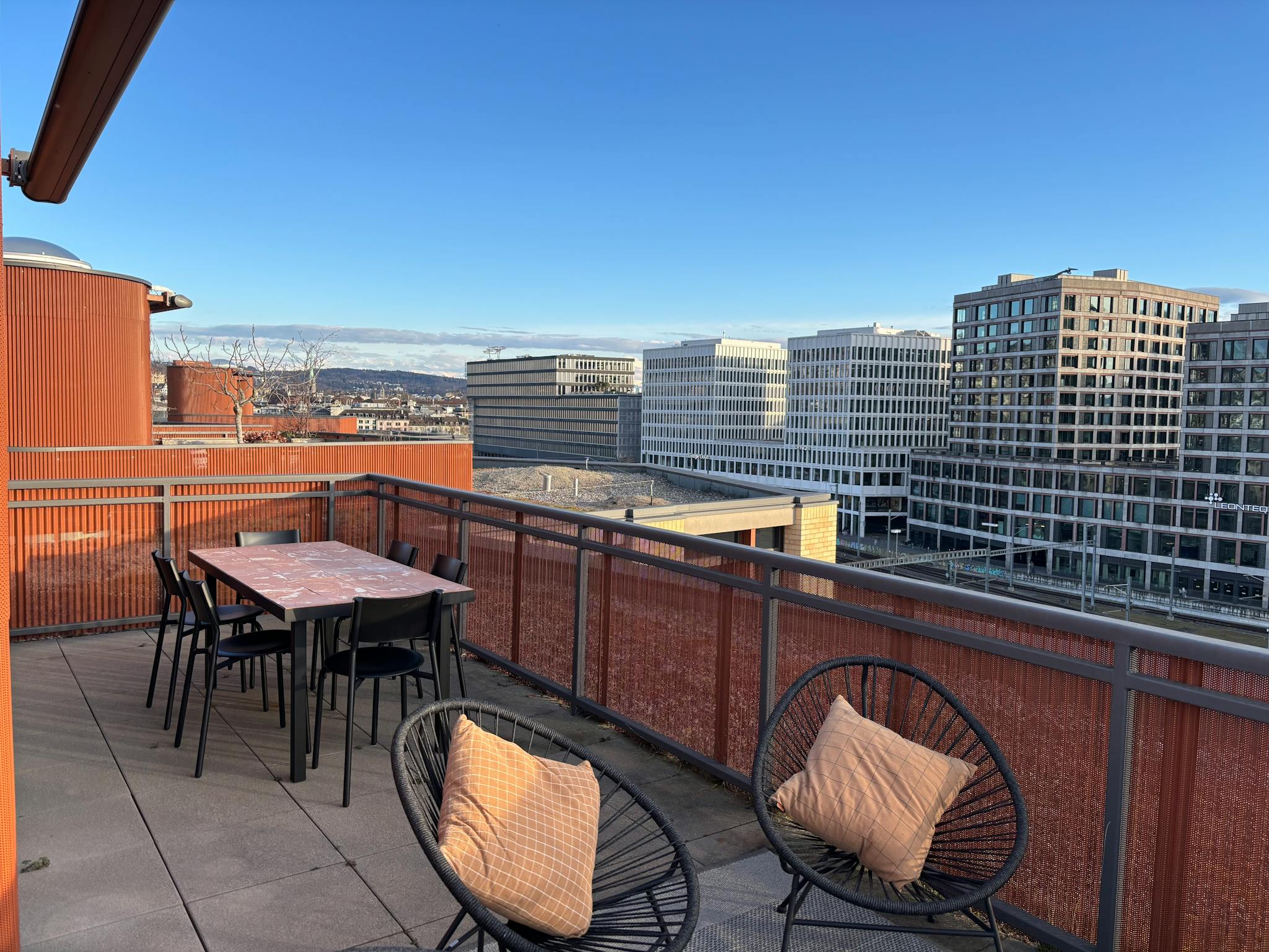 Non-SmokingNot allowedHave a look at our 7th floor penthouse apartment in district 5, right by the central train station - completed in 2023. It includes a spacious modern living room including kitchen and dining room, 2 bedrooms and one bathroom. Additionally there are 2 balconies and a stunning rooftop overlooking the whole city. All rooms are furnished with minimalistic high-quality furniture.
