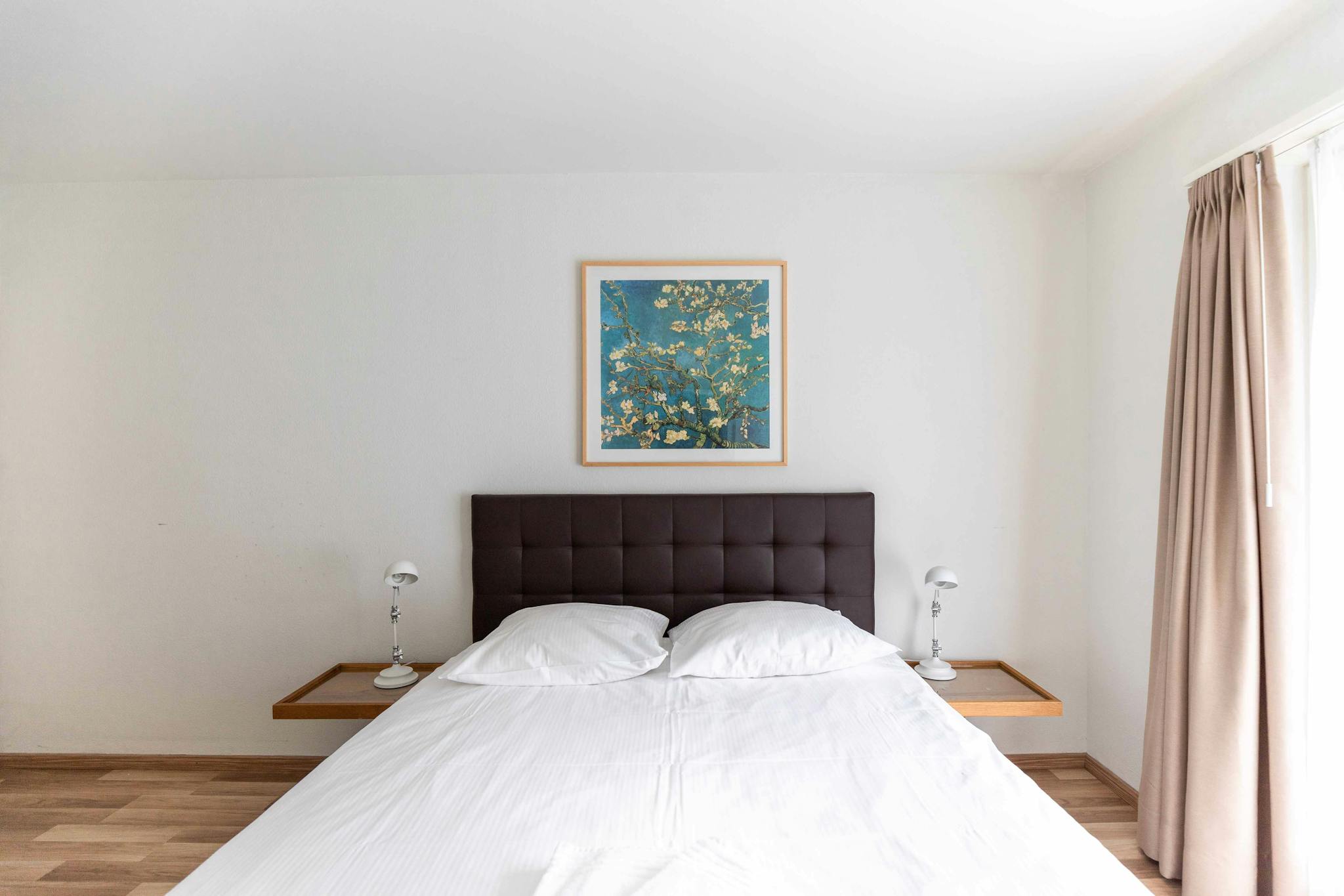The apartment is fully equipped including flat screen TV and WiFi. The 2 bed sofa in the living room provides additional space for guests. Household appliances such as microwave, coffee machine, kettle, toaster, iron, vacuum cleaner and hairdryer are available. The kitchen is equipped with the usual utensils such as pots, pans, dishes and cutlery. From a rental period of one month the weekly housekeeping, change of bed linen and towels are included in the rent.
