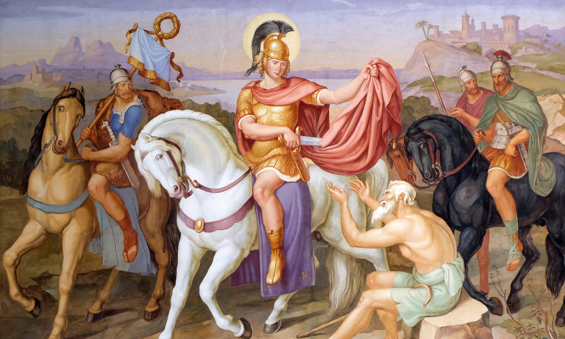 The incident for which he is most remembered also occurred when Saint Martin was a soldier. He was approaching the city of Amiens, in Gaul (France), where he met a naked beggar. Martin cut his riding cloak in half and offered half of it to the beggar.